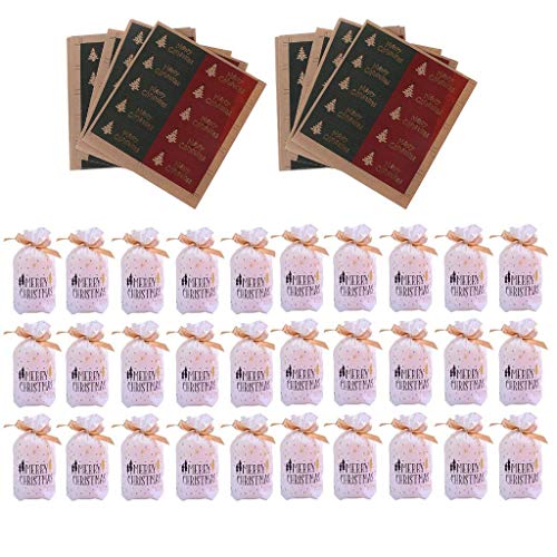 sears 50 Pcs Christmas Tree Merry Christmas Candy Bags with Drawstring Snowflake Treat Bag Cookie Chocolate Biscuits Gift Bags Decorative Pouch,100 Pcs Seal Stickers Labels for Xmas Wedding Birthday Party